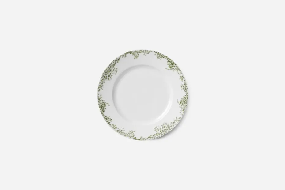 Assiett Myrten är formgiven av Signe Persson-Melin som en komplettering till teservisen i tenn som hon formgav för Svenskt Tenn 2004. Det fina, sirliga myrtenmönstret smyckar flera produkter till det dukade bordet. Det är en gammal tradition att binda brudkronor av myrtens gröna blad, och växten är starkt förknippad med kärlek.