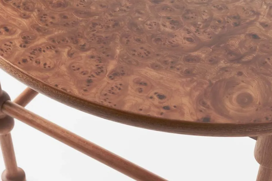 Storartad design i ett litet bord. Här har Josef Frank använt sig av svarvade slåar och på ett lekfullt sätt låtit kulor bli ett dekorativt inslag som för tankarna till ett klassiskt barockbord. Bord 2126 är ovanligt litet med sina knappa 40 centimeter i höjd. Det formgavs av Josef Frank för Svenskt Tenn 1951, och ingick i möbleringen av Josef och Anna Franks hem på Rindögatan i Stockholm. Bordet visades i Josef Franks Minnesutställning på Nationalmuseum 1968. Sedan dess har det inte varit i produktion, men återlanserades i samband med Svenskt Tenns 100-årsjubileum 2024.