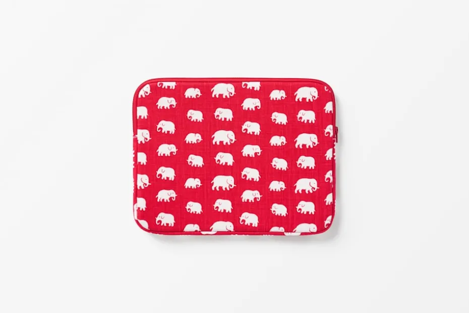 Handsytt, praktiskt och dekorativt datorfodral i Svenskt Tenns klassiska textil Elefant, formgivet av företagets grundare Estrid Ericson. Hon letade alltid efter vackra föremål, textilier och souvenirer att ta hem och sälja i butiken på Strandvägen. Det var efter en förlaga från Belgiska Kongo som hon formgav mönstret med de små elefanterna. Svenskt Tenn tryckte textil Elefant för första gången i slutet av 1930-talet. Elefantmönster