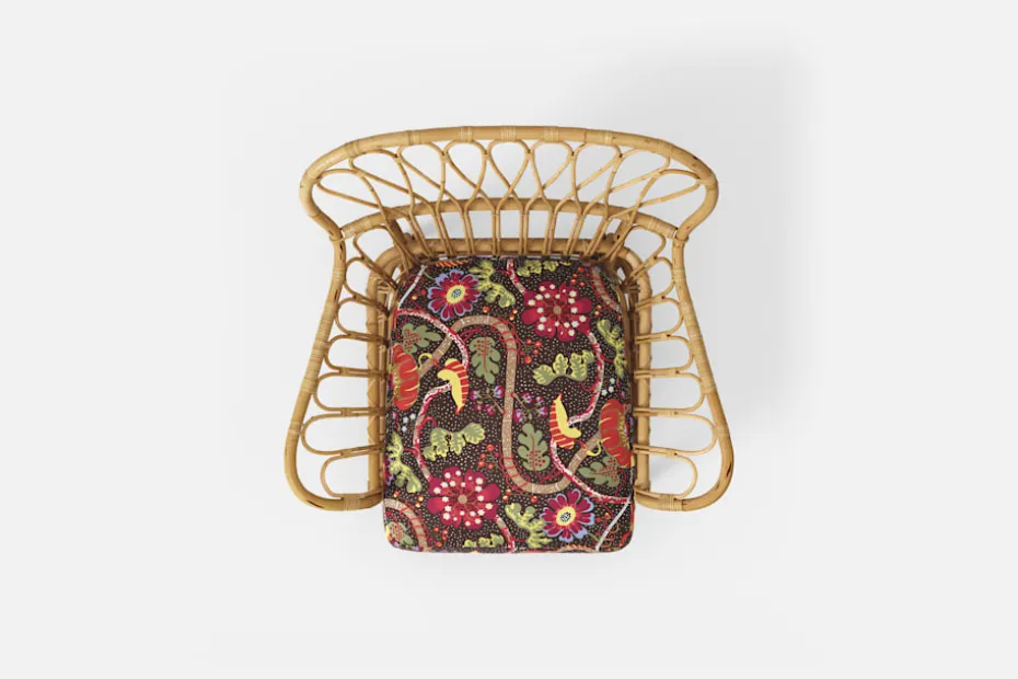 Dyna som passar till Fåtölj 311 klädd i textil Mirakel mörkbrun (Lin 450). Josef Frank ritade över 160 textilmönster för Svenskt Tenn, de flesta med fantasifulla botaniska motiv. För Josef Frank var naturens färger och former i inredningen ett sätt att kunna andas och känna frihet i slutna rum. Mönstret Mirakel lär ha fått sitt namn efter att Josef Frank yttrat att ”det var ett mirakel att en så liten rapport kunde ge upphov till något så storslaget.” Mirakel är ett av hans tidigaste mönster, formgivet redan under 1920-talets senare hälft.