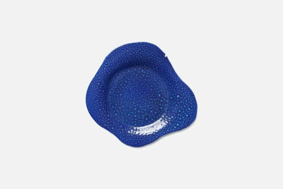 Djupblå fat i glaserat stengods, tillverkade av skulptören och konstnären Anton Alvarez för Svenskt Tenn. Materialet som använts är detsamma som konstnären använder för att skapa sina uppmärksammade, keramiska skulpturer. Faten tillverkas i Antons ateljé i Stockholm. Den hantverksmässiga processen gör att såväl ytan som formen kan variera. Varje fat kan ses som ett konstverk och är unikt i sitt slag.