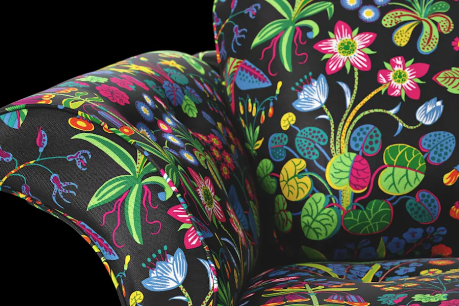 Liljevalchssoffan med tillhörande fåtölj hör till de första möblerna som Josef Frank ritade för Svenskt Tenn 1934. De är namngivna efter utställningen på Liljevalchs Konsthall i september samma år, där de uppmärksammades för sin voluminösa form och sitt generösa sittdjup. Såväl soffan som fåtöljen lanserades under en tid då strama, funktionalistiska möbler dominerade marknaden, och har genom åren kommit att stå för Josef Franks aversion mot det han kallade “den svenska ”Slöjdföreningstråkigheten”. Liljevalchssoffan stod klädd med Baker-kretongen Körsbär i Estrid Ericsons hem på Strandvägen, och fick sin renässans i samband med 100-årsminnet av Josef Franks födelse 1985. Till hundraårsjubileet 2024 återlanseras den tillhörande fåtöljen, efter att ha legat vilande i Svenskt Tenns arkiv i nära ett decennium.