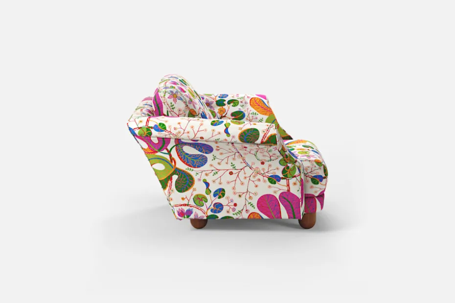 Liljevalchssoffan med tillhörande fåtölj hör till de första möblerna som Josef Frank ritade för Svenskt Tenn 1934. De är namngivna efter utställningen på Liljevalchs Konsthall i september samma år, där de uppmärksammades för sin voluminösa form och sitt generösa sittdjup. Såväl soffan som fåtöljen lanserades under en tid då strama, funktionalistiska möbler dominerade marknaden, och har genom åren kommit att stå för Josef Franks aversion mot det han kallade “den svenska ”Slöjdföreningstråkigheten”. Liljevalchssoffan stod klädd med Baker-kretongen Körsbär i Estrid Ericsons hem på Strandvägen, och fick sin renässans i samband med 100-årsminnet av Josef Franks födelse 1985. Till hundraårsjubileet 2024 återlanseras den tillhörande fåtöljen, efter att ha legat vilande i Svenskt Tenns arkiv i nära ett decennium.