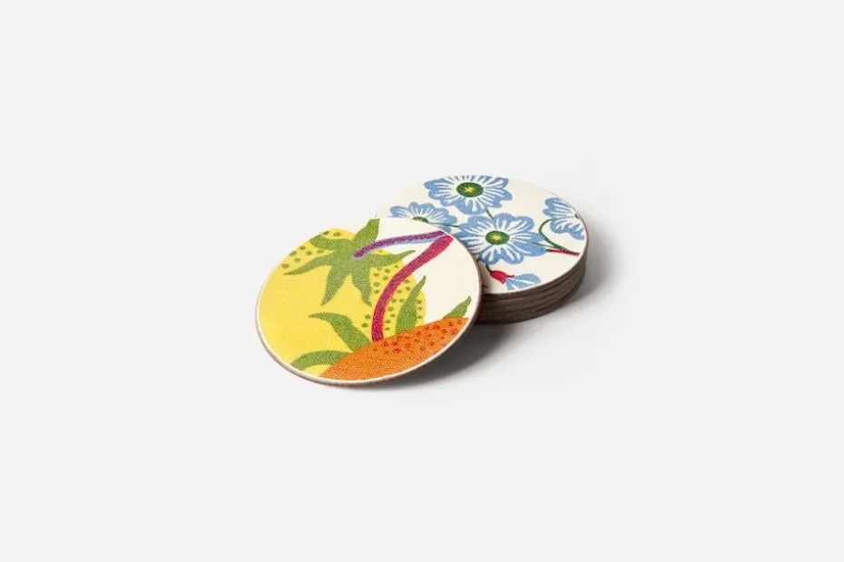 Svenskt Tenns glasunderlägg finns i flera av Josef Franks färgstarka mönster och passar såväl till vardag som till fest. Underläggen säljs i 6-pack. Vegetable Tree är en variant av livsträdstemat som Josef Frank ofta använde sig av och som med glimten i ögat har stöpts om till ett grönsaksträd. I detta mönster stiliserar Josef Frank formerna, höjer färgstyrkan och blandar naturtroget och fantasirikt för att väcka förundran. Mönstret formgavs under Josef Franks år i New York, 1943-1945.