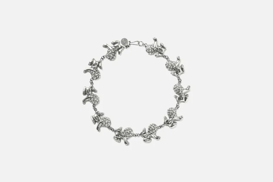 Ett elegant halsband i silver, skapat efter lejonet i tenn som formgavs på 1920-talets andra hälft av Anna Petrus; en konstnärinna känd för sina lejonskulpturer och reliefer. Hon skapade lejonet med inspiration från främre orienten.