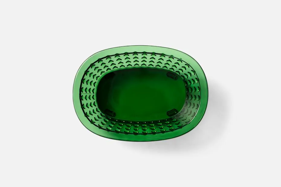 Jardinjären har en tunn skarv i glaset som uppkommer då den är pressad i en delbar gjutform. Den poleras i efterbearbetningen, men spår av den hantverksmässiga produktionen finns alltid kvar på slutprodukten.
