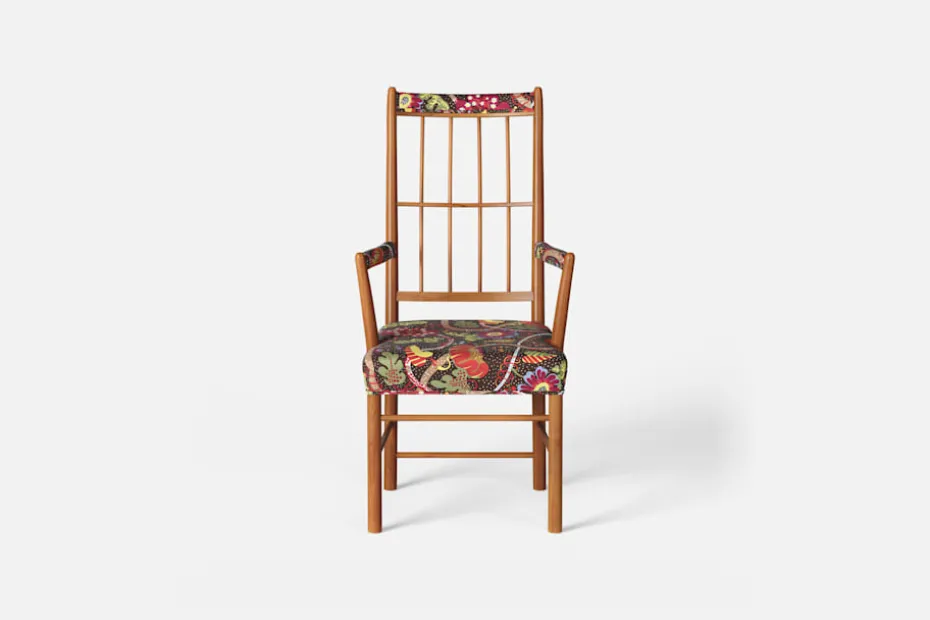 Karmstol 652 formgav Josef Frank 1936, och tre år senare användes den i interiören vid Golden Gate-utställningen i San Fransisco. Den eleganta karmstolen har en hög genombruten rygg av runda svarvade pinnar sammanbundna av en tvärslå, vilket bildar ett geometriskt luftigt mönster. För att skapa en spänning i formen valde Josef Frank ofta att blanda olika träslag och material.