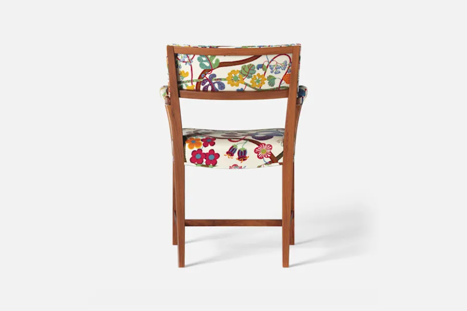 Stol 695 formgavs av Josef Frank år 1935. Hans filosofi var att möblerna skulle ge användaren maximal bekvämlighet och stol 695 har därför en omsorgsfullt stoppad ryggdyna.