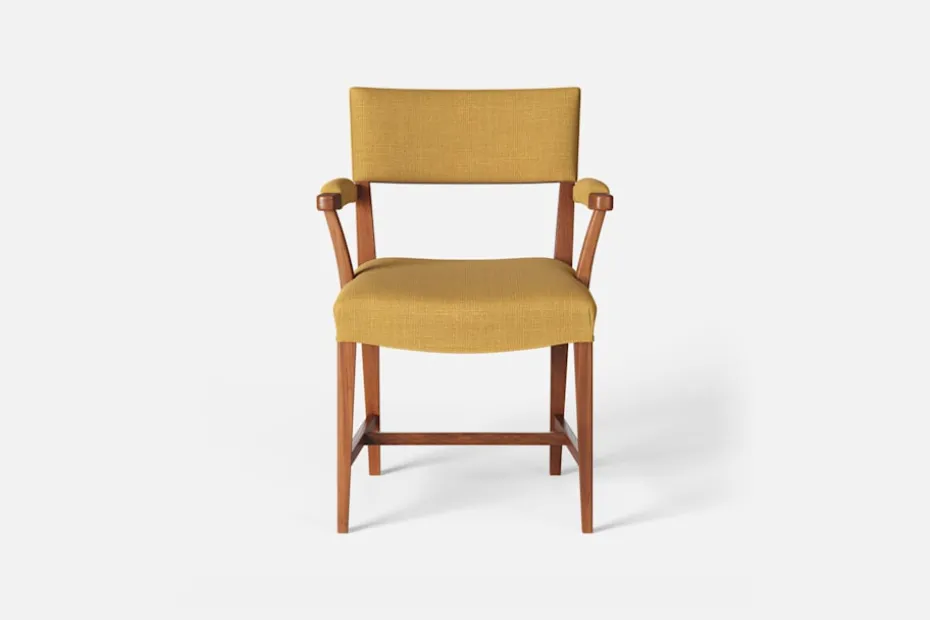 Stol 695 formgavs av Josef Frank år 1935. Hans filosofi var att möblerna skulle ge användaren maximal bekvämlighet och stol 695 har därför en omsorgsfullt stoppad ryggdyna.
