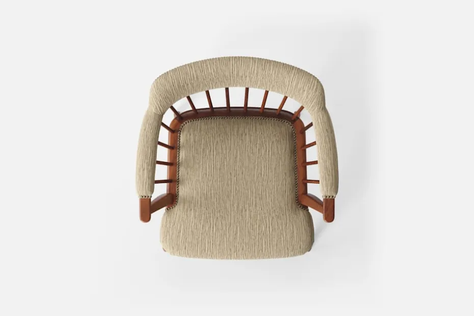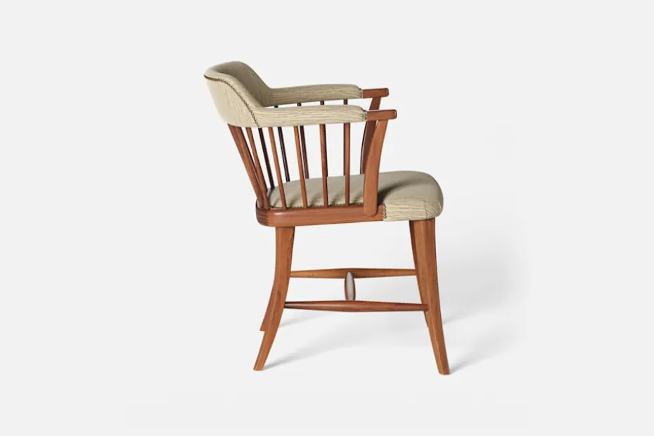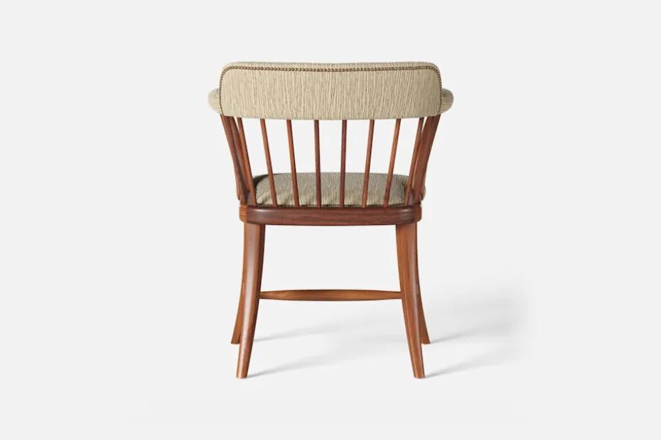 I tidskriften Obs! 1954, skrev arkitekten och formgivaren Josef Frank: ”Den som betraktar en stol som en sittmöbel bara för att sitta på kommer alltid att sitta obekvämt. Man sitter på en stol för att göra något annat, för att arbeta eller äta vid ett bord, och man lämnar stolen så fort man kan. En stol är bekväm för sitt ändamål om man inte tröttnar för fort, det vill säga om stolen anpassar sig efter alla ställningar som man vill inta. Själv sätter jag mig överhuvudtaget aldrig på en stol, som är formad för en enda ställning. Jag vill ha möjlighet att sitta på olika sätt vid olika tillfällen och olika tider på dagen.” Karmstol 789 formgavs av Josef Frank för Svenskt Tenn 1938. Dess genombrutna stolsrygg är skapad i enlighet med tankarna om att inte föra in avgränsande hinder och väggar i interiören. Formen är typisk för tidig viktoriansk epok och kallas i England allmänt för ”Captain’s chair”. Det robusta i den traditionella kaptensstolen motverkas dock av benens och ryggens svängda linjer och underredets H-kryss. Stolen nylanserades på Svenskt Tenn 2019 och tillverkas hantverksmässigt hos Gemla, Sveriges äldsta möbelfabrik.