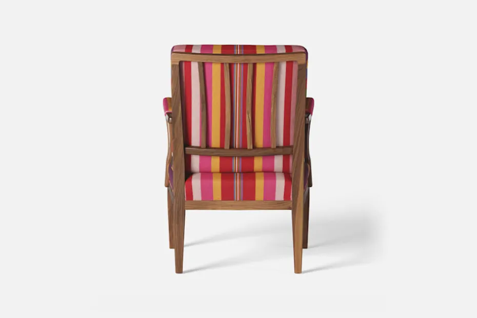 I formgivningen av karmstol 868 inspirerades Josef Frank av 1700-talets nätta karmstolar med elegant svängda armstöd och raka ben. Han formgav stolen 1938.