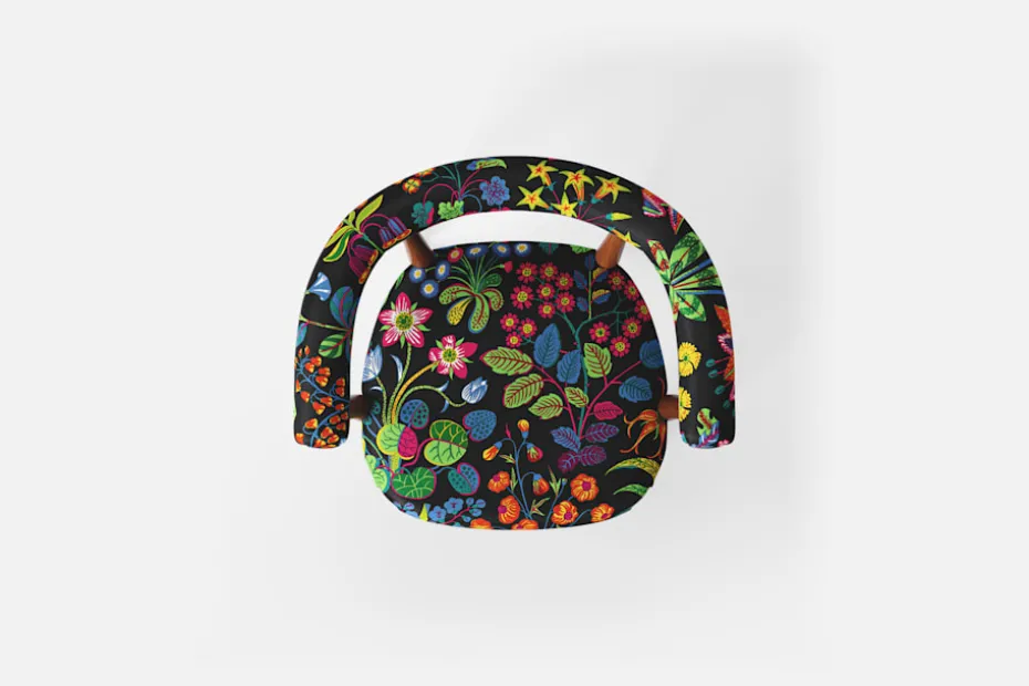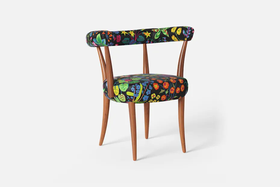 Josef Frank formgav Karmstol 966 för Svenskt Tenn 1938. Stolen visades i samband med Världsutställningen i New York 1939, där Svenskt Tenn gjorde stor succé med sin nytänkande formgivning. Den hästskoformade ryggbrickan och de utsvängda benen vittnar om en viss inspiration från antikens klismos- och sullastolar. Karmstolen finns i Estrid Ericsons inredning på Tolvekarna 1952 klädd i leopardmönstrad textil.