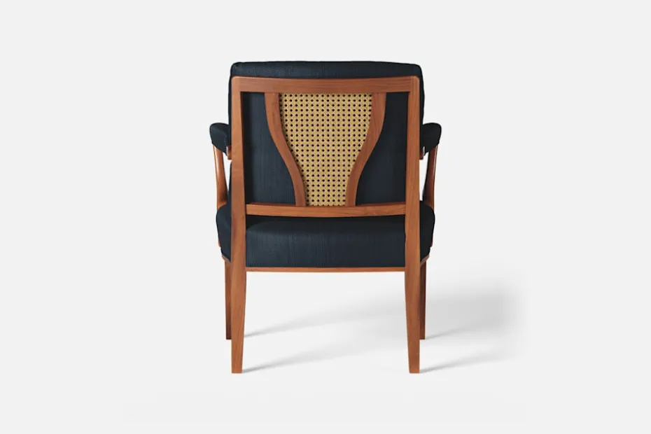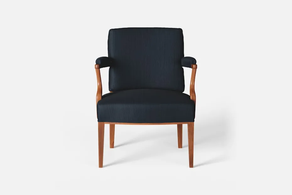 Med inspiration från 1700-talets nätta karmstolar formgav Josef Frank karmstol 969. För att skapa spänning i formgivningen valde Josef Frank ofta att blanda olika träslag och material. Karmstol 969 är gjord i mahogny med infällning av rotting i ryggen bakom den löstagbara kudden. Stolen formgavs 1939 och finns i två olika sitthöjder.