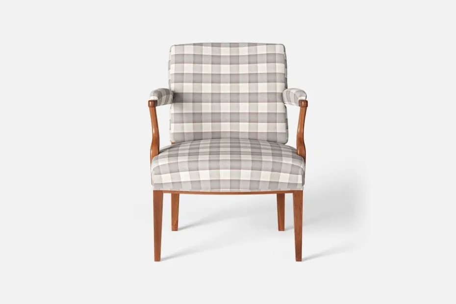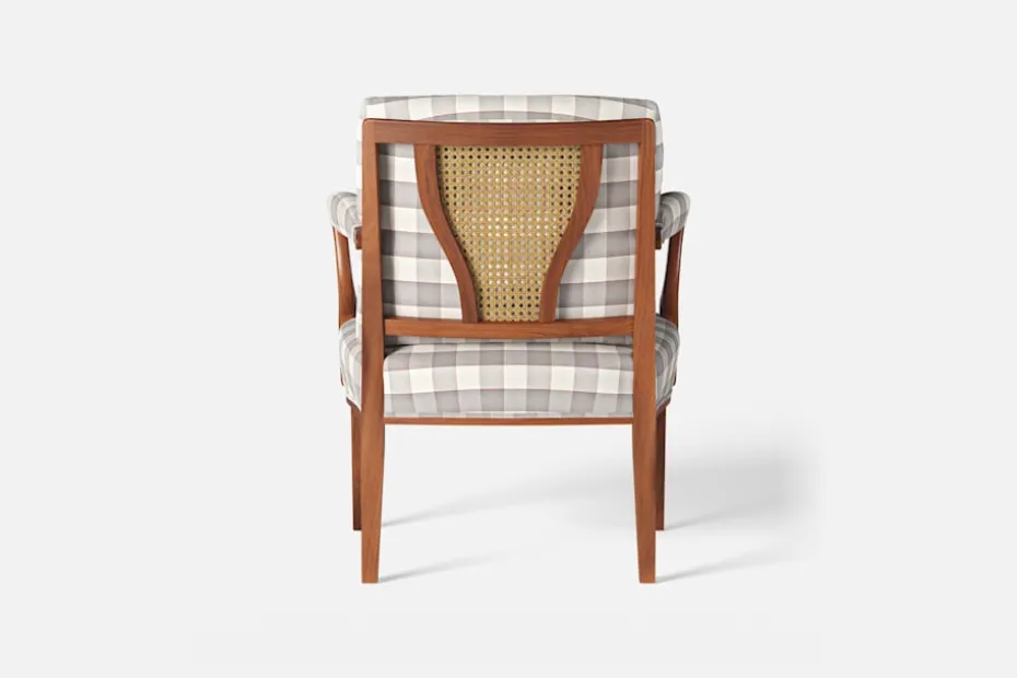 Med inspiration från 1700-talets nätta karmstolar formgav Josef Frank karmstol 969. För att skapa spänning i formgivningen valde Josef Frank ofta att blanda olika träslag och material. Karmstol 969 är gjord i mahogny med infällning av rotting i ryggen bakom den löstagbara kudden. Stolen formgavs 1939 och finns i två olika sitthöjder.