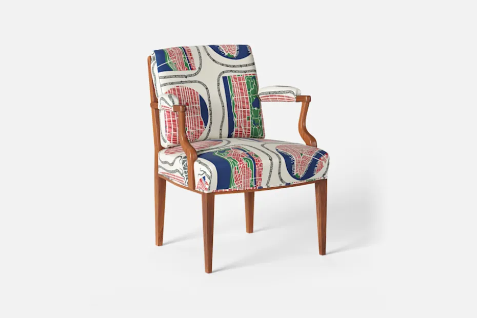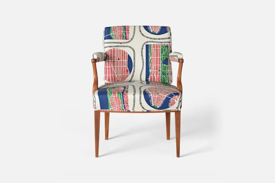 Med inspiration från 1700-talets nätta karmstolar formgav Josef Frank karmstol 969. För att skapa spänning i formgivningen valde Josef Frank ofta att blanda olika träslag och material. Karmstol 969 är gjord i mahogny med infällning av rotting i ryggen bakom den löstagbara kudden. Stolen formgavs 1939 och finns i två olika sitthöjder.
