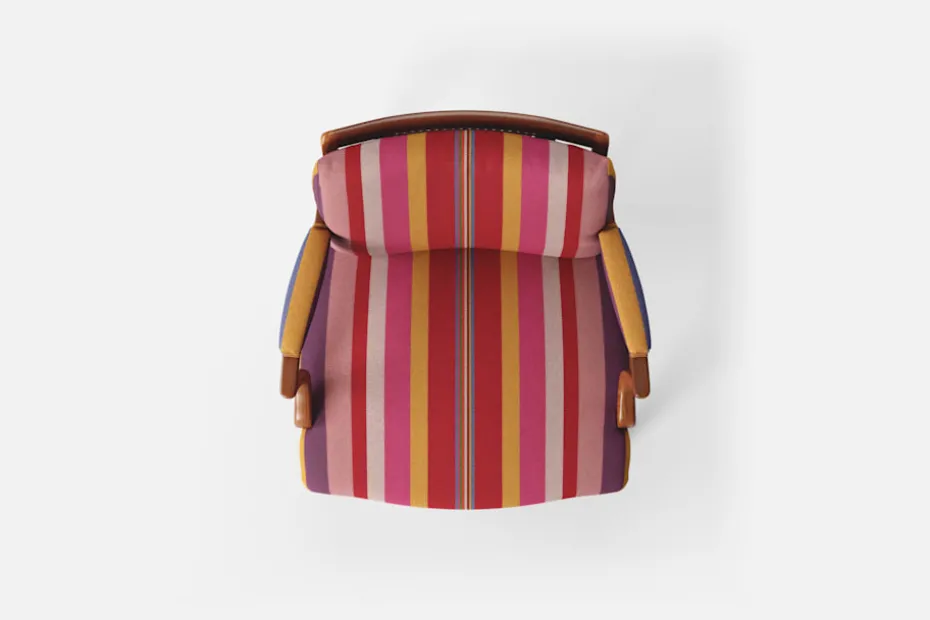 Med inspiration från 1700-talets nätta karmstolar formgav Josef Frank karmstol 969. För att skapa spänning i formgivningen valde Josef Frank ofta att blanda olika träslag och material. Karmstol 969 är gjord i mahogny med infällning av rotting i ryggen bakom den löstagbara kudden. Stolen formgavs 1939 och finns i två olika sitthöjder.