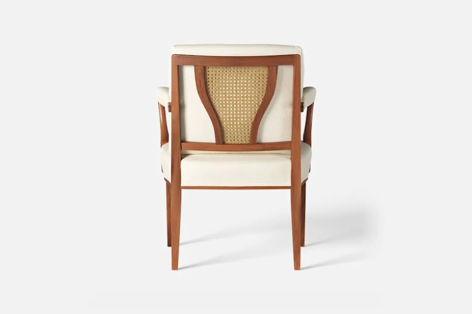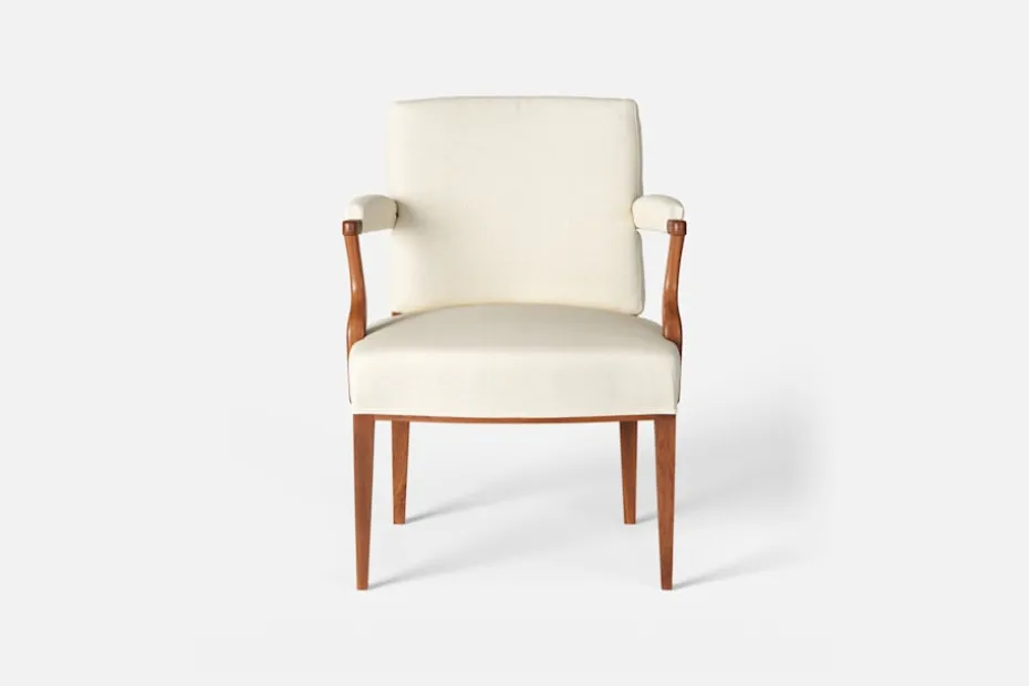 Med inspiration från 1700-talets nätta karmstolar formgav Josef Frank karmstol 969. För att skapa spänning i formgivningen valde Josef Frank ofta att blanda olika träslag och material. Karmstol 969 är gjord i mahogny med infällning av rotting i ryggen bakom den löstagbara kudden. Stolen formgavs 1939 och finns i två olika sitthöjder.