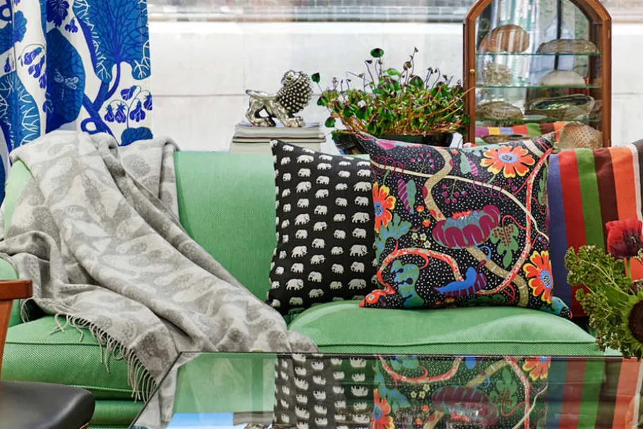 Svenskt Tenns klassiska kuddar är omtyckta världen över; från Stockholm till New York och Shanghai. Tyget Hamaca Rojo kommer ursprungligen från Donghia Textiles, ett av flera inredningsföretag grundade av Angelo Donghia i USA på 1960 – 1970 talet. Tyget har funnits med ensamrätt i Svenskt Tenns sortiment sedan år 1995.