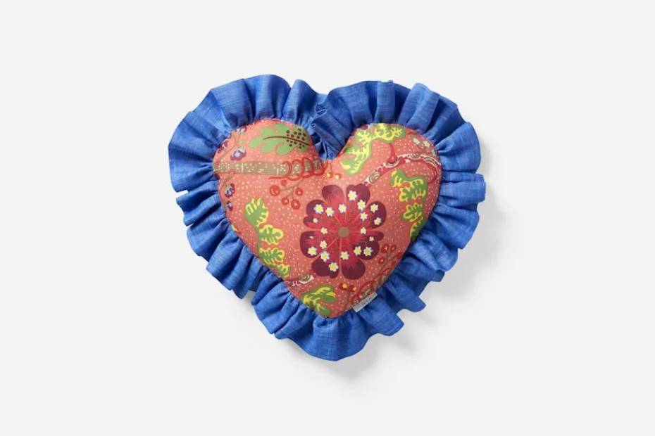 De lekfullt hjärtformade kuddarna i mönster av Josef Frank sys för hand efter en idé och vision av Margherita Maccapani Missoni. Till sommaren 2023 har Margherita formgivit en mindre kollektion inredningsdetaljer exklusivt för Svenskt Tenn, där hon ger uttryck för sin eklektiska stil och lekfulla attityd till inredning. Josef Frank ritade över 160 textilmönster för Svenskt Tenn, de flesta med fantasifulla botaniska motiv. För Josef Frank var naturens färger och former i inredningen ett sätt att kunna andas och känna frihet i slutna rum. Mönstret Mirakel lär ha fått sitt namn efter att Josef Frank yttrat att ”det var ett mirakel att en så liten rapport kunde ge upphov till något så storslaget.” Mirakel är ett av hans tidigaste mönster, formgivet redan under 1920-talets senare hälft.