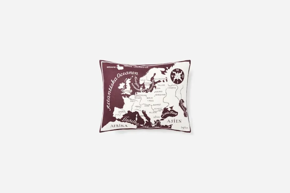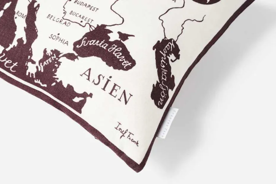 Kuddarna med Josef Franks mönster Världskartan från 1939 föreställer en värld i fred, och kontinenter utan gränser mellan länderna. De tre olika kuddarna i Svenskt Tenns sortiment bär motiv på båda sidor och kan vändas efter tycke och smak. Motiven består av Europa/Nordamerika, Europa/Afrika, Nordamerika/Sydamerika och Asien/Oceanien. Kuddarna finns i svart och lila utföranden.