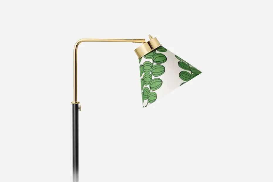 Josef Frank formgav en lampskärm till varje modell av sina lampor. Ursprungligen var de alla i vit textil, men Estrid Ericson lät senare sy upp dem med mönster av Josef Frank och andra formgivare. Denna lampskärm i linnekretong har mönstret Celotocaulis. Mönster Celotocaulis formgavs ursprungligen av Josef Frank ca 1930. Celoto kommer från ett asiatiskt blomsläkte som kännetecknas av plymliknade blomställningar och Caulis är det latinska ordet för blomstjälk.