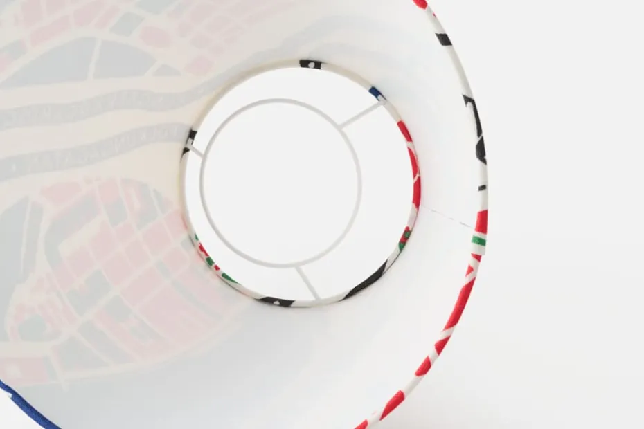 Lampskärmen som visas på bilden passar Bordslampa Klot i Tenn. Den används tillsammans med en lyra med ring som säljs separat. Varje enskild lampskärm är unik och mönstrets placering varierar därför från skärmen på bilden.