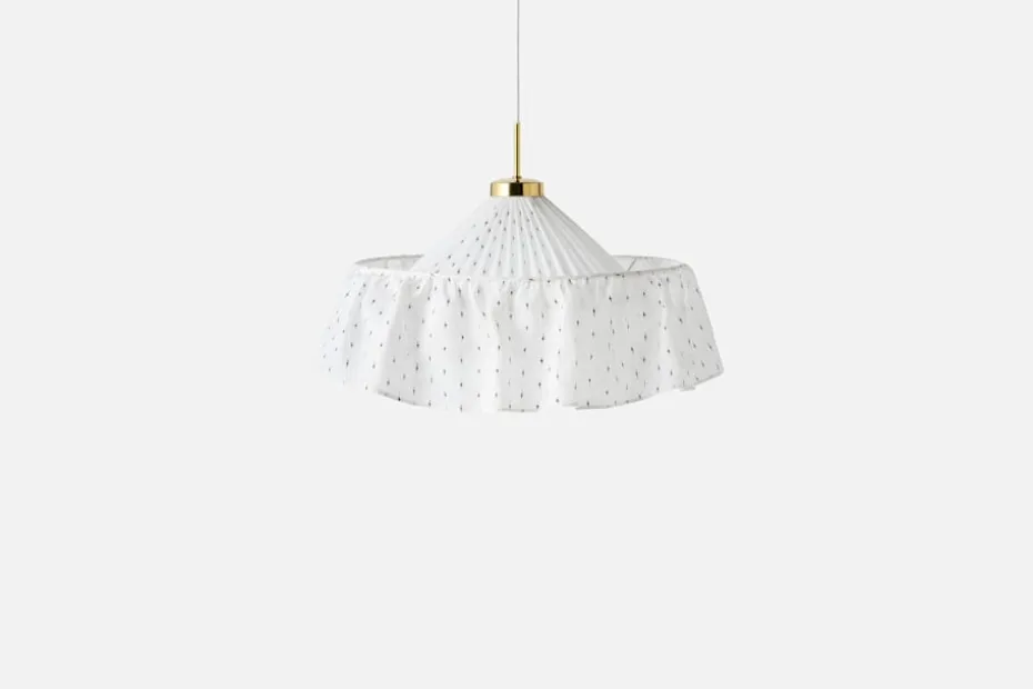 Josef Frank formgav lampskärmen till Taklampa 2560 under 1940-talet för Svenskt Tenn. Den fick den smeknamnet ”Carl Larssonlampan”, då familjen Larssons hem i Sundborn inspirerat Josef Frank till formen. Denna lampskärm är sydd i Helene Blanches utsökta textil Drop Voile Linen. Det lekfulla men enkla mönstret, en imitation av en droppe bläck som möter en sidenyta, är tidlöst i sin design, tryckt på 100% fint belgiskt linnetyg.
