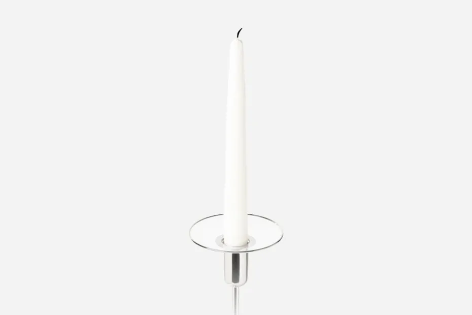 Elegant ljusmanschett i glas från Nybro Crystal. Skyddar såväl ljusstake som bord och duk från rinnande stearin.