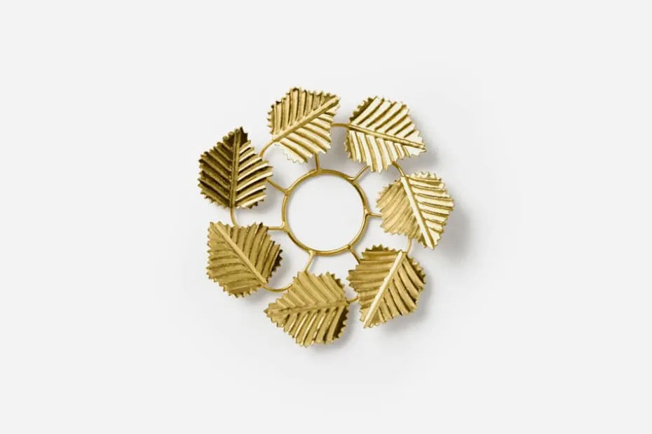 Naturen tog sig ständigt nya skepnader i Estrid Ericsons skaparhänder. Som en hyllning till hennes kreativitet har Svenskt Tenn tagit fram tre dekorationskransar. De spröda löven är böjbara så att varje ljusmanschett kan formas unikt.