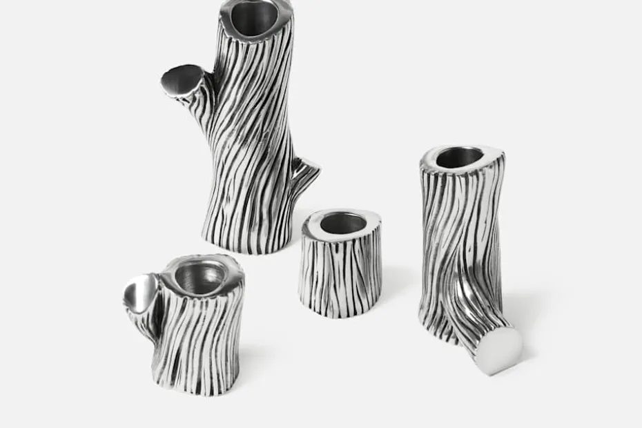 Dessa ljusstakar formade som trädgrenar är gjutna i tenn. Den avhuggna grenen har blivit något av ett signum för formgivaren Jakob Solgren Nordenskiöld som skapade sin första naturinspirerade kollektion för Svenskt Tenn år 2011. Ljusstakarna lanserades i november 2013 och finns i fyra olika storlekar: mini, liten, mellan och stor.