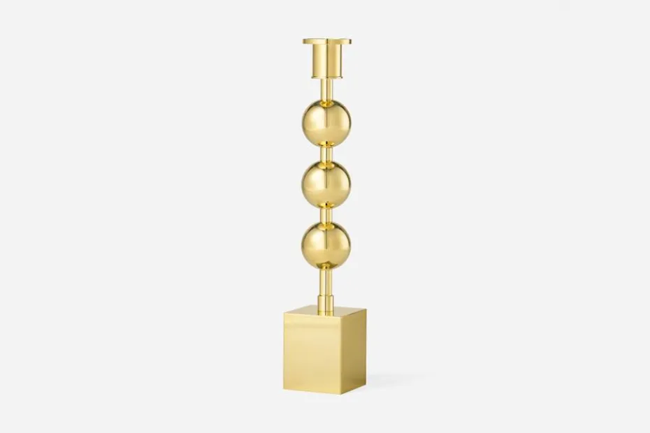 Denna ljusstake formgiven av Sigurd Persson är ett exempel på den spänning, mellan det geometriska och det organiska formspråk, som Persson varierade och kombinerade i sitt skapande. Ursprunget till Ljusstake Tre Kulor är en handsmidd silverljusstake som Sigurd Persson formgav till utställningen Silverne stakar 1963 i Stockholm.