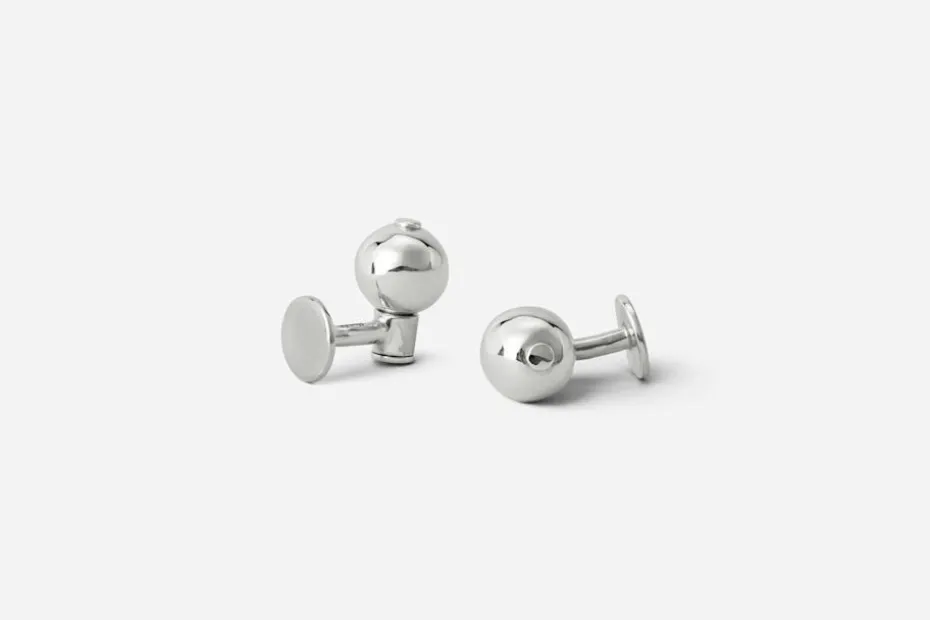 Manschettknapparna i återvunnet silver är skapade för hand av formgivarduon Murky i Stockholm. Designen är inspirerad av havspärlans naturliga form.