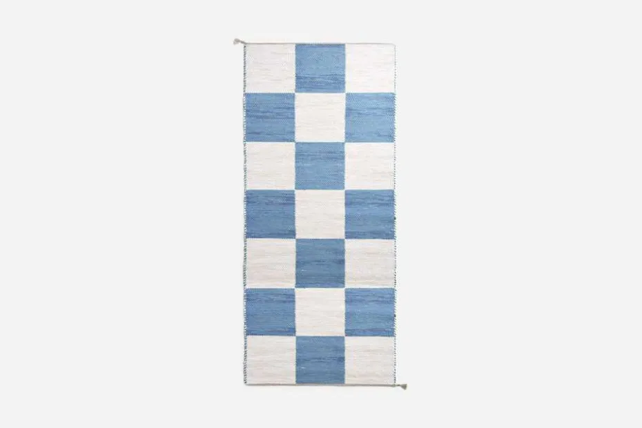 Svenskt Tenns dubbelvävda trasmatta ”Schackrutan” är formgiven av Margit Thorén under 1940-talet.
