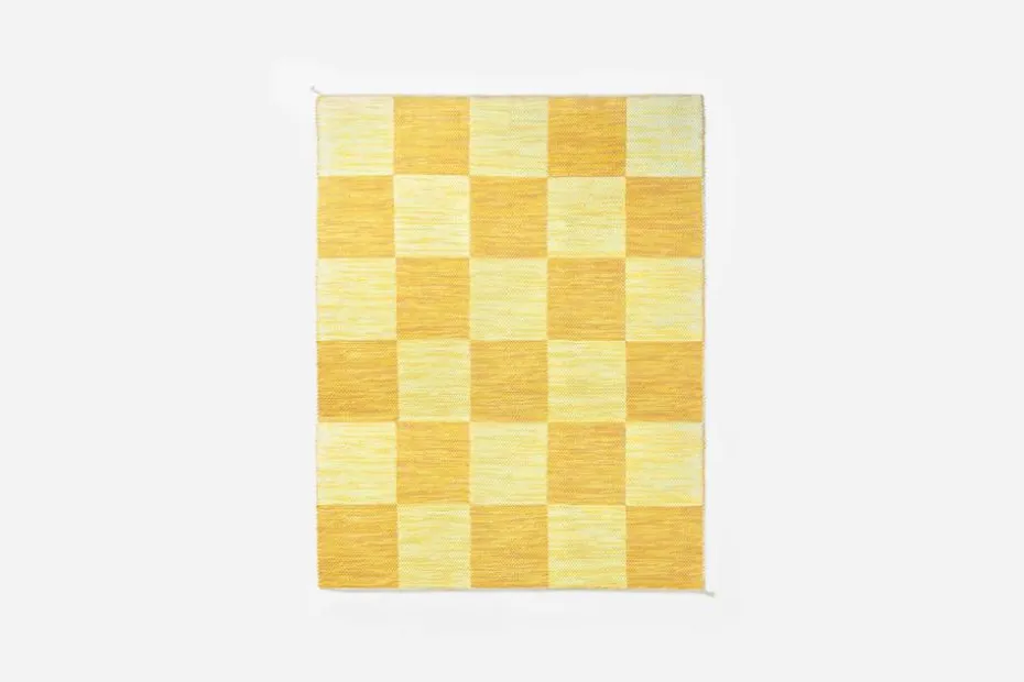 Svenskt Tenns dubbelvävda trasmatta ”Schackrutan” är formgiven av Margit Thorén under 1940-talet.