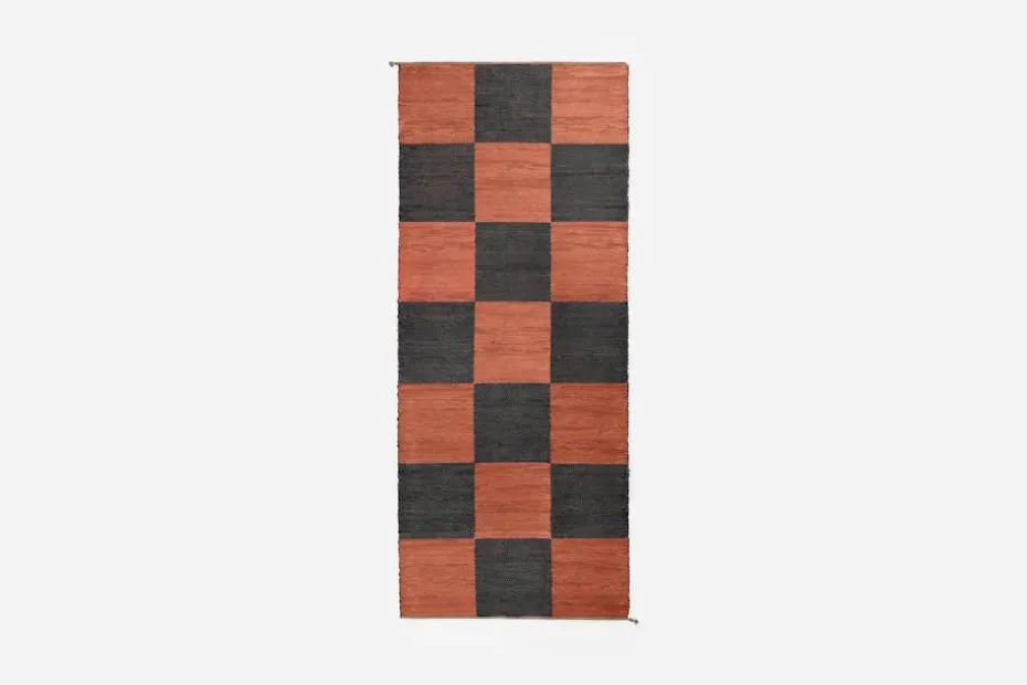 Svenskt Tenns dubbelvävda trasmatta ”Schackrutan” är formgiven av Margit Thorén under 1940-talet.