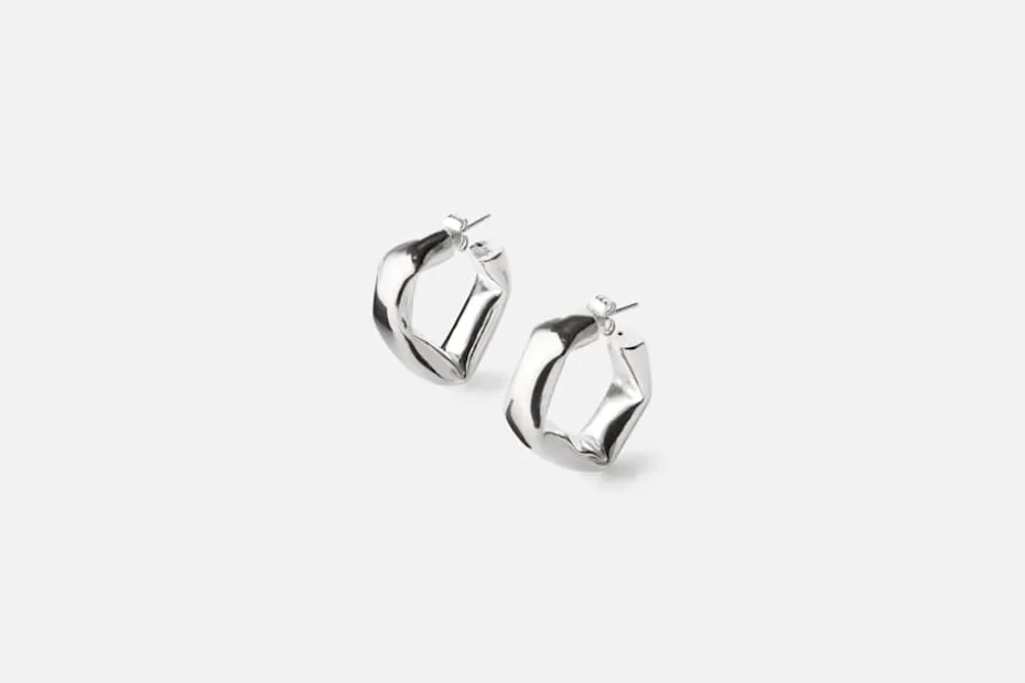 Veckade silverörhängen som tillverkats för hand och formgivits av Yasar Aydin. I sitt skapande inspireras Yasar av klassiska och traditionella former som han omtolkar till nutida design.