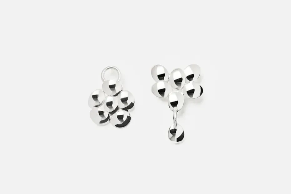 Små, vackra örhängen i återvunnet silver, med skira blad som löds ihop för hand och tillsammans skapar en växande form. Detta arbetssätt gör varje örhänge unikt i sin form. Örhängena är skapade av formgivarduon Murky, som tillsammans skapar smycken med rörliga detaljer och hämtar inspiration från det lilla fröets stora betydelse. Murky består av formgivarna Emelica Lidman och Mike Årsjö. De använder sig av både odlade och naturpärlor, gärna med naturliga och unika former. Smyckena tillverkar de för hand i Stockholm, alltid i återvunnet silver.