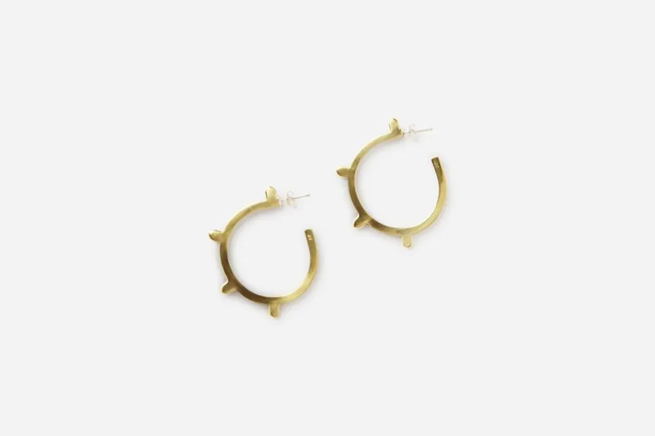 Smyckeformgivaren Jonna Preisler har skapat de stilfulla örhängena i mässing. På Svenskt Tenn finner du även ett armband i samma serie.
