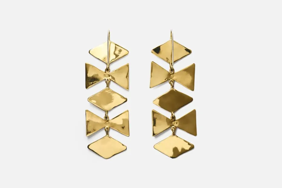 Dessa skulpturala mässingsörhängen är formgivna av Ariana Boussard-Reifel, vars smycken förenar samtida konst med antika former. Örhängena är handgjorda i mässing och speglar Arianas bakgrund som skulptör och hennes djupa fascination för mänsklig utsmyckning genom tiderna. Hennes smycken har burits av kvinnor i flera generationer och skapas för att stärka, inspirera och hålla över tid.
