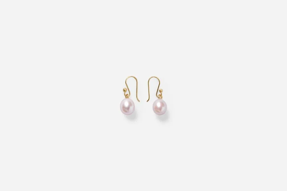 Dessa örhängen i guld med rosa pärla är formgivna av Ted Muehling. Sedan 1976 har han skapat unika smycken med naturen som inspiration, och varje par tillverkas omsorgsfullt för hand i hans studio i New York.