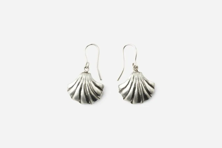 Det var i december 1943 som Estrid Ericson började visa nykomponerade smycken i tenn. Några hade förebilder i bronsålderssmycken från Historiska museet, men de flesta var egna skapelser som växt fram i verkstaden tillsammans med Thure Carlsson, Svenskt Tenns begåvade ciselör. Smyckena blev snabbt en modeartikel. Dessa snäckformade örhängen är tillverkade i klassiskt tenn.