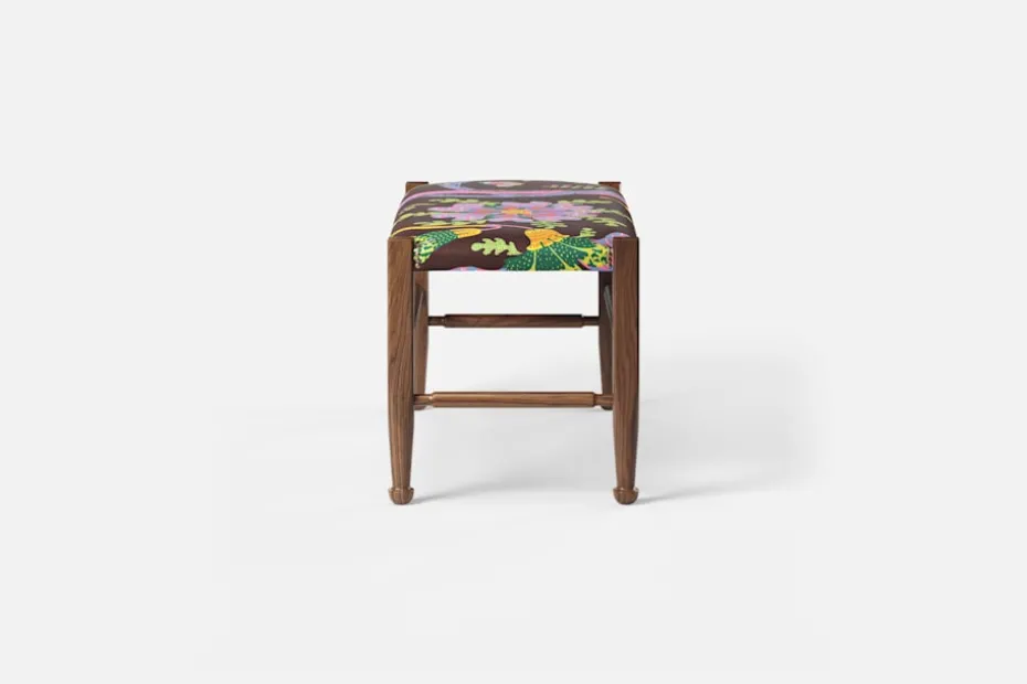 Lätthet och elegans kännetecknar ofta Josef Franks möbelkonst. Så också denna pall, med synliga ben och de typiska tassfötterna, som formgavs i slutet av 1940-talet. Inspirationen hämtade Josef Frank från England och 1700-talets Queen Anne-stil.