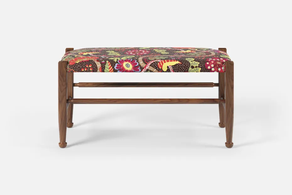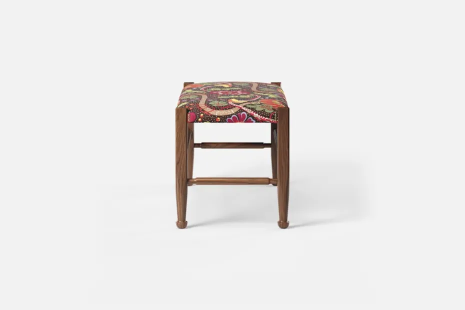 Lätthet och elegans kännetecknar ofta Josef Franks möbelkonst. Så också denna pall, med synliga ben och de typiska tassfötterna, som formgavs i slutet av 1940-talet. Inspirationen hämtade Josef Frank från England och 1700-talets Queen Anne-stil.