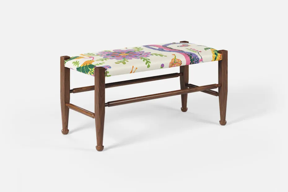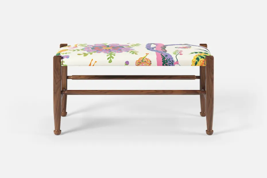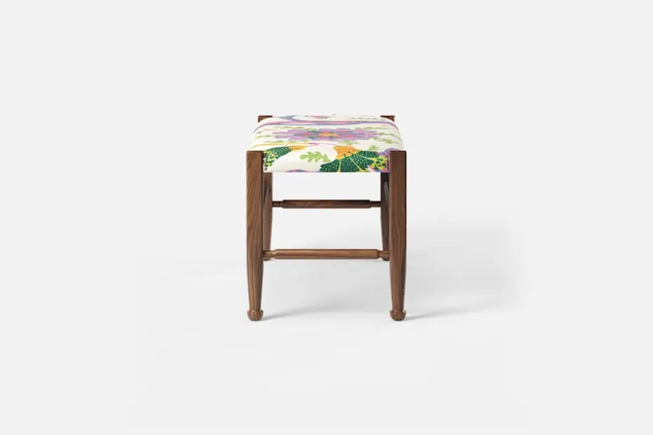 Lätthet och elegans kännetecknar ofta Josef Franks möbelkonst. Så också denna pall, med synliga ben och de typiska tassfötterna, som formgavs i slutet av 1940-talet. Inspirationen hämtade Josef Frank från England och 1700-talets Queen Anne-stil.