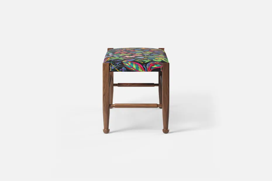 Lätthet och elegans kännetecknar ofta Josef Franks möbelkonst. Så också denna pall, med synliga ben och de typiska tassfötterna, som formgavs i slutet av 1940-talet. Inspirationen hämtade Josef Frank från England och 1700-talets Queen Anne-stil.
