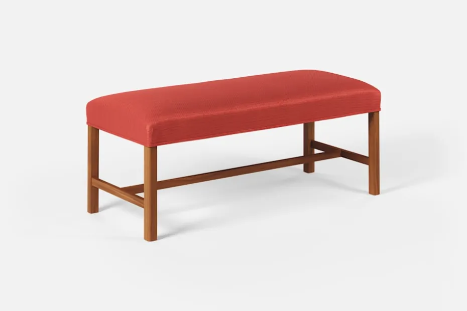 Denna rektangulära, stramt utformade pall med sits i tyg eller skinn formgavs av Josef Frank år 1950. De fyrkantiga benen har den typiska hörnprofileringen som kännetecknar Josef Franks formgivning. Benställningens H-kryss för tankarna till 1700-talets möbelformgivning.