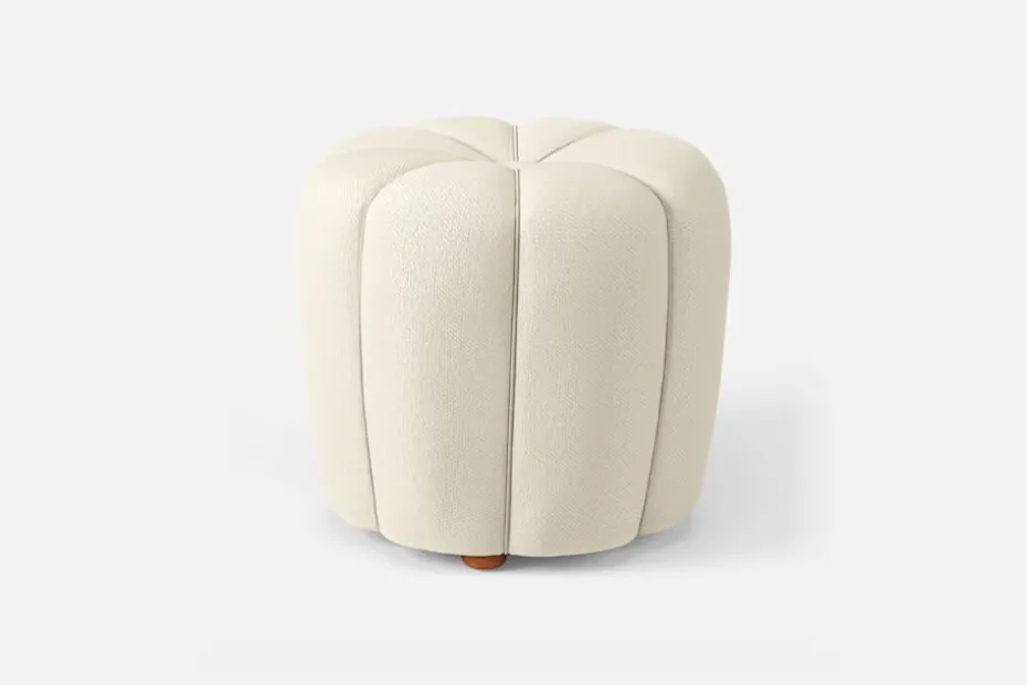 Den vackra, textilklädda pallen med mjuka, runda former ritades av Josef Frank för Svenskt Tenn cirka 1935. Pallen gjordes som en omarbetad variant av en möbel han skapade för sitt företag Haus und Garten i Wien, omkring 1929.