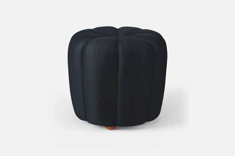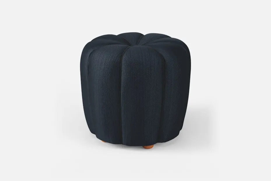 Den vackra, textilklädda pallen med mjuka, runda former ritades av Josef Frank för Svenskt Tenn cirka 1935. Pallen gjordes som en omarbetad variant av en möbel han skapade för sitt företag Haus und Garten i Wien, omkring 1929.