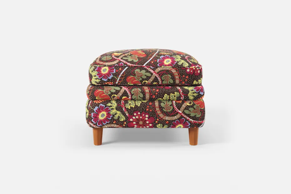 Denna fotpall formgavs av Josef Frank år 1936 tillsammans med fåtölj 568. Den generösa sittplymån under dynan och de facetterade nedåt avsmalnande benen är typiska för Josef Franks formspråk.