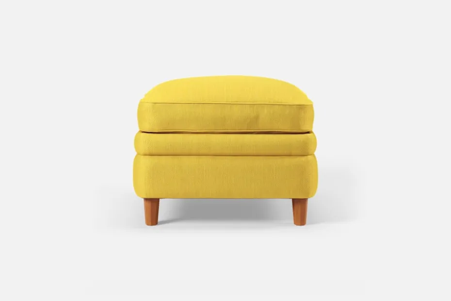 Denna fotpall formgavs av Josef Frank år 1936 tillsammans med fåtölj 568. Den generösa sittplymån under dynan och de facetterade nedåt avsmalnande benen är typiska för Josef Franks formspråk.